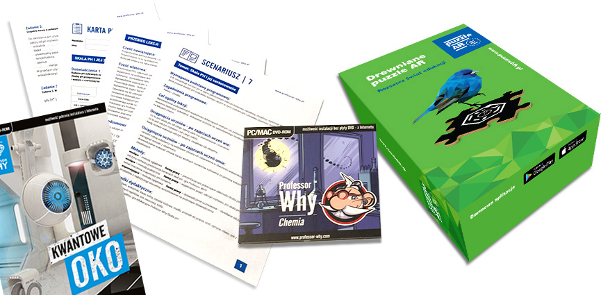Zestaw Przyrodniczy Professor Why™ Chemia + Puzzle AR + Pakiet Scenariuszy + Professor Why™: Kwantowe Oko zawiera: